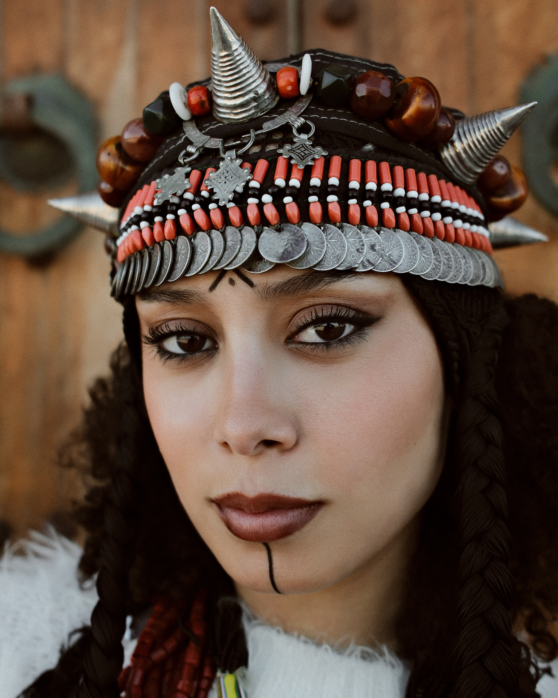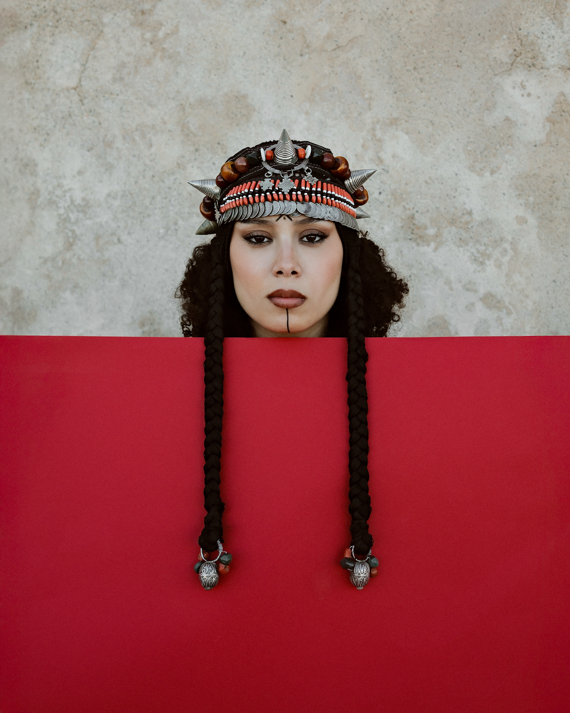 I have always enjoyed learning about stories and the history behind things. Photography became a way to explore and deepen that curiosity. Conversations with my father about our Amazigh roots opened the door to discovering the richness of our heritage. Through this photoshoot, we pay tribute to Amazigh culture, celebrating its identity and symbolism. We truly enjoyed the creative process, from styling to searching for meaningful accessories that reflect this heritage.